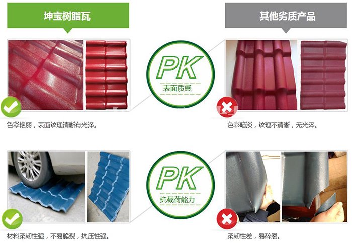 據(jù)上所述,我們不難看出為何合成樹脂瓦的質(zhì)量和價格會有如此大的差距,所以我們在購買優(yōu)質(zhì)合成樹脂瓦的時候不能只“圖相因”,還要看質(zhì)量!還是中國老話說得好!一分錢一分貨!好貨不便宜,便宜無好貨!