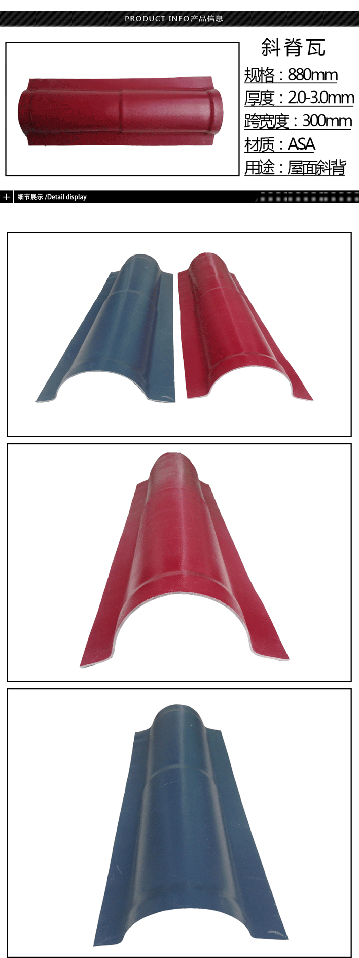因?yàn)闃渲吆穸群皖伾话阈瓒ㄗ?,瓦的長(zhǎng)度都是按照節(jié)距的倍數(shù)來(lái)定做的,所以親如果第一次購(gòu)買的話,那么掌柜上圖有樹脂瓦尺寸對(duì)照表,親可根據(jù)這個(gè)來(lái)定做你需要的長(zhǎng)度。