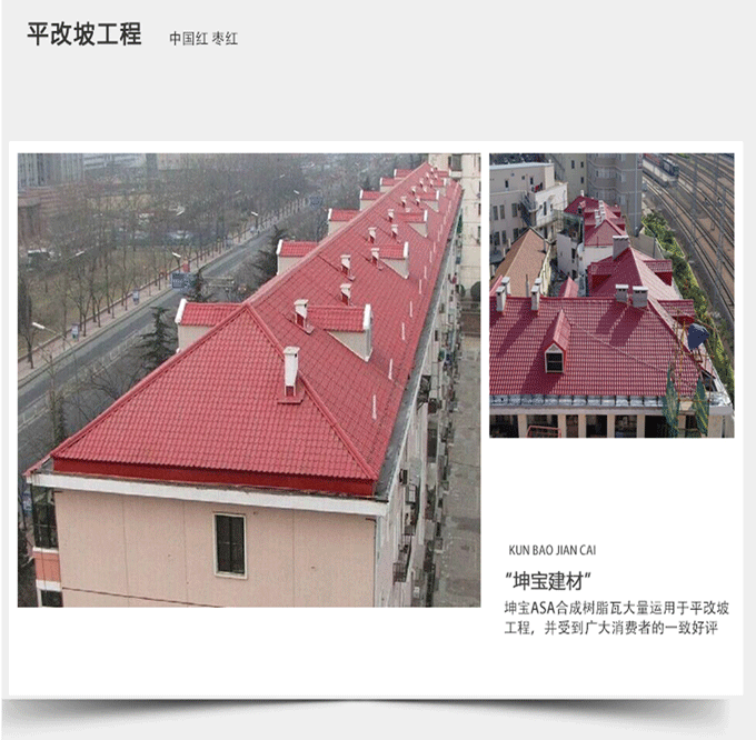 成都坤寶建筑材料有限公司,是一家專業(yè)經(jīng)營新型綠色環(huán)保節(jié)能的建材公司。坤寶建材從成立之初跟隨國家倡導(dǎo)的綠色環(huán)保節(jié)能方針同步,我們的產(chǎn)品覆蓋建筑外墻裝飾應(yīng)用、建筑屋面等領(lǐng)域。主營產(chǎn)品包括ASA合成樹脂瓦、秸稈纖維超強(qiáng)聚酯瓦、秸稈纖維掛壁板、PVC塑鋼瓦、APVC復(fù)合瓦、柔性飾面磚、軟瓷、保溫材料等產(chǎn)品。我們以優(yōu)異的產(chǎn)品質(zhì)量獲得了廣大客戶的信賴,坤寶環(huán)保屋面瓦及其他綠色新型建材特點(diǎn)具有:環(huán)保節(jié)能、隔熱阻燃、防水、防腐蝕、抗紫外線、柔性好,不易脆裂,隔音抗載荷性能強(qiáng)!使用壽命長等特性,在行業(yè)內(nèi)遠(yuǎn)遠(yuǎn)領(lǐng)先其他廠家生產(chǎn)的環(huán)保材料。