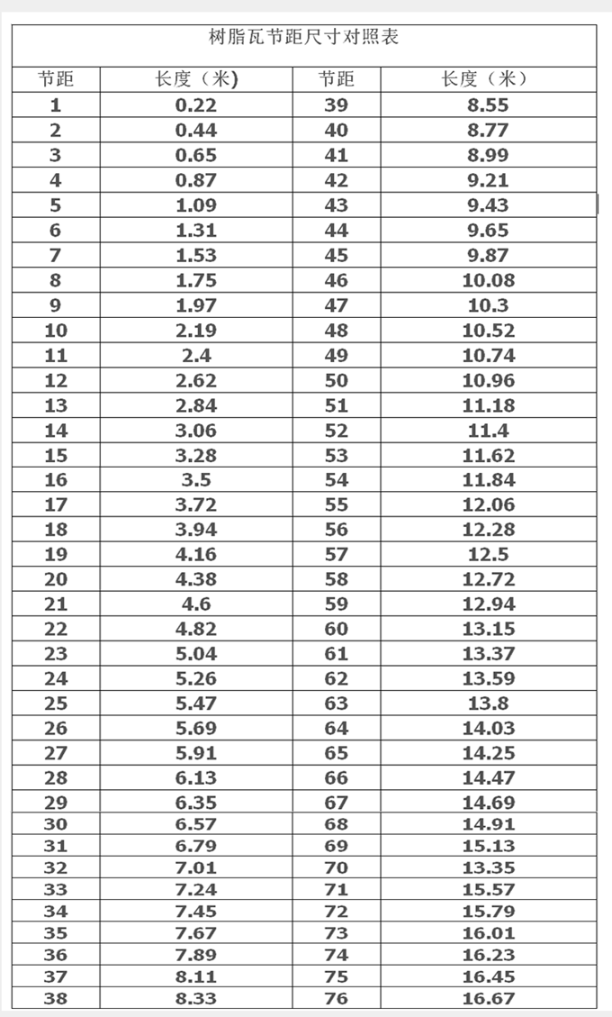 因?yàn)闃渲吆穸群皖伾话阈瓒ㄗ?,瓦的長度都是按照節(jié)距的倍數(shù)來定做的,所以親如果第一次購買的話,那么掌柜上圖有樹脂瓦尺寸對(duì)照表,親可根據(jù)這個(gè)來定做你需要的長度。